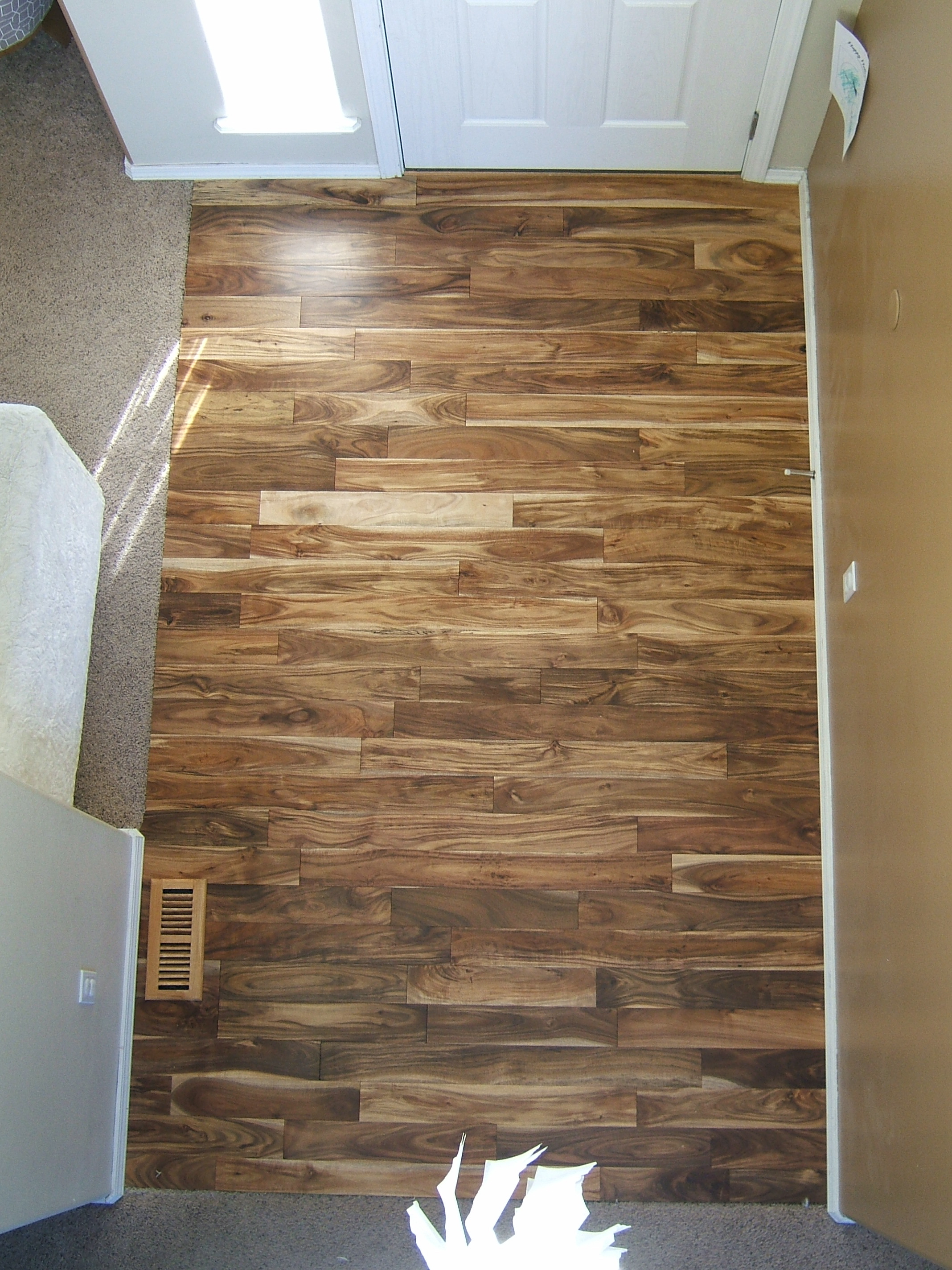 The wood we used was a pre-finished acacia from Lumber Liquidators. For those who may be interested in all the technical specs of the wood and floor, here are some details: